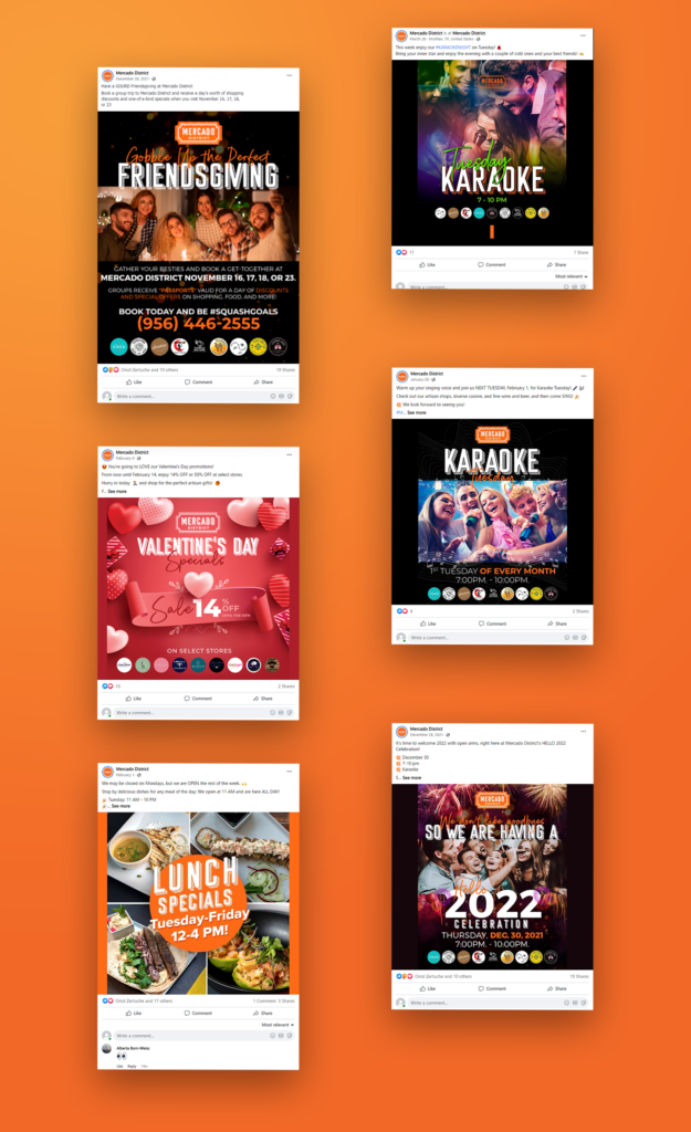 Since beginning to work with The Mercado District in 2020, CODESM has helped Mercado to expand brand awareness in the McAllen area and establish itself as a desirable food, shopping, and entertainment destination in the Valley.