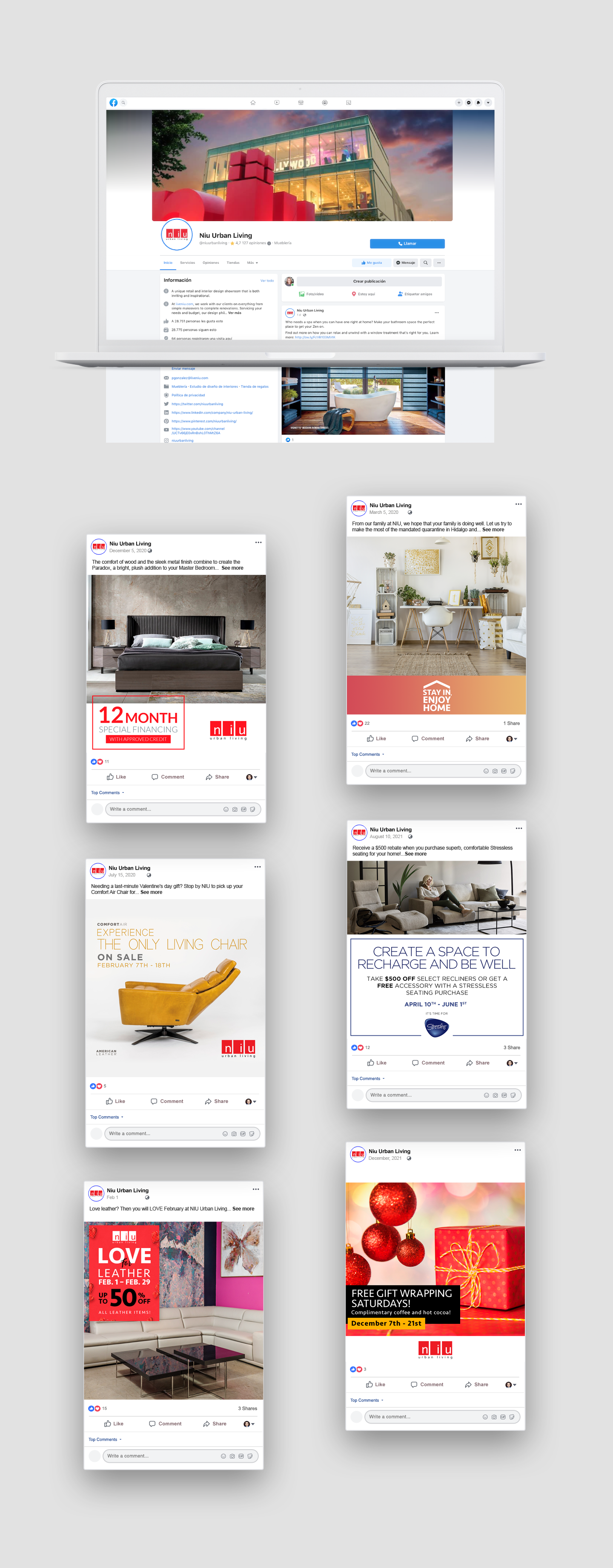 CODESM’s solution was to create a holistic marketing approach. This approach leveraged multiple marketing channels in order to deliver NIU’s message to its target audiences. CODESM focused first on crafting a visually stunning and conversion-driven website where all their marketing efforts could point consumers. Then, CODESM focused on creating compelling Facebook ads and developing a vibrant social media presence. Each sale or promotion NIU put out was thoughtfully crafted into a set of visually compelling and carefully written material that could be used in print materials, Facebook ads, videos, webpages, and more. By keeping the messaging consistent and compelling, CODESM was able to generate interest and earn responses from consumers. At the same time, CODESM kept NIU’s branding consistent and predictable, ensuring that consumers related the incredible furniture and deals they were seeing with their source: NIU Urban Living.