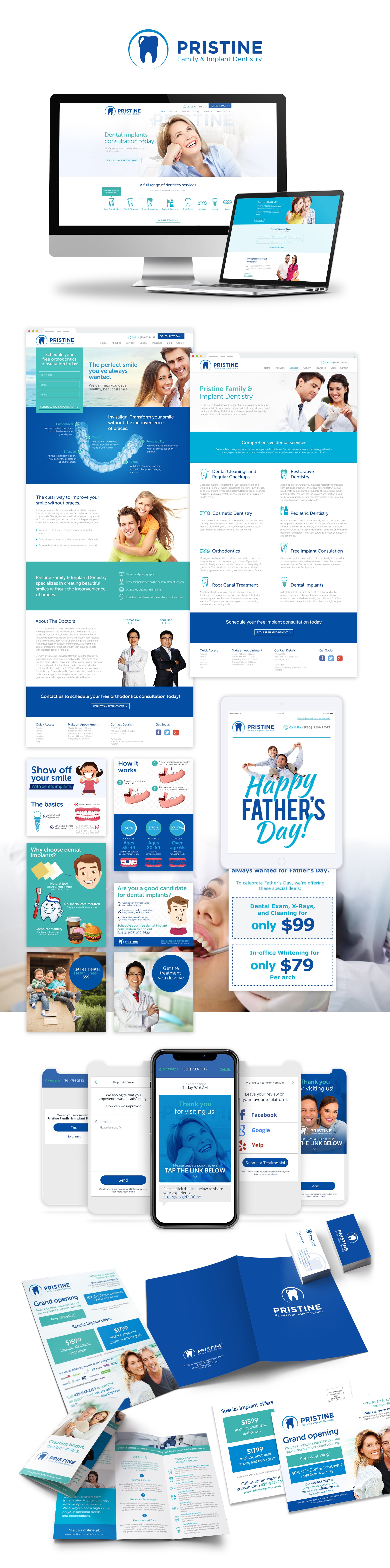 Pristine emphasizes family-friendly, flexible, and affordable dentistry. We wanted those elements to be clear at a single glance in all of their marketing efforts.