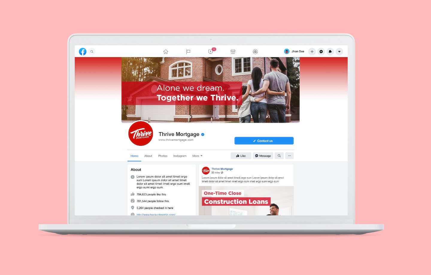 Thrive Mortgage expanded their brand across beautifully branded social media platforms and a newly-designed website