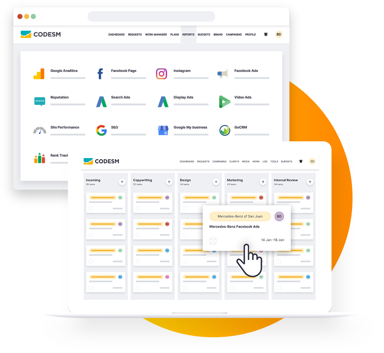 You get to track progress (and ROI) in real-time from the custom-built Codesm Projects and put sales on autopilot with your own tailored GoCRM.
